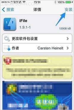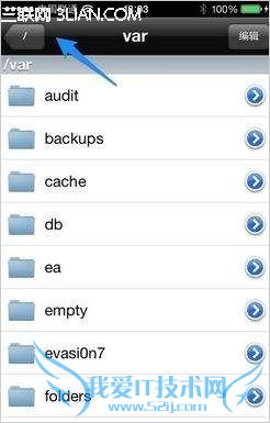 如果打开iFile以后,当前目录不在系统的 / 根目录下,请点击左上角按钮返回,直到退回到系统的根目录下: