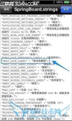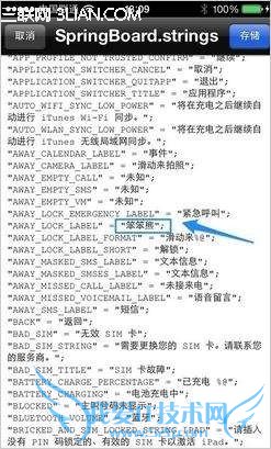 在编辑模式中,找到这一行 "AWAY_LOCK_LABEL"="滑动来解锁" 字样,在紧急呼叫一行的下面: