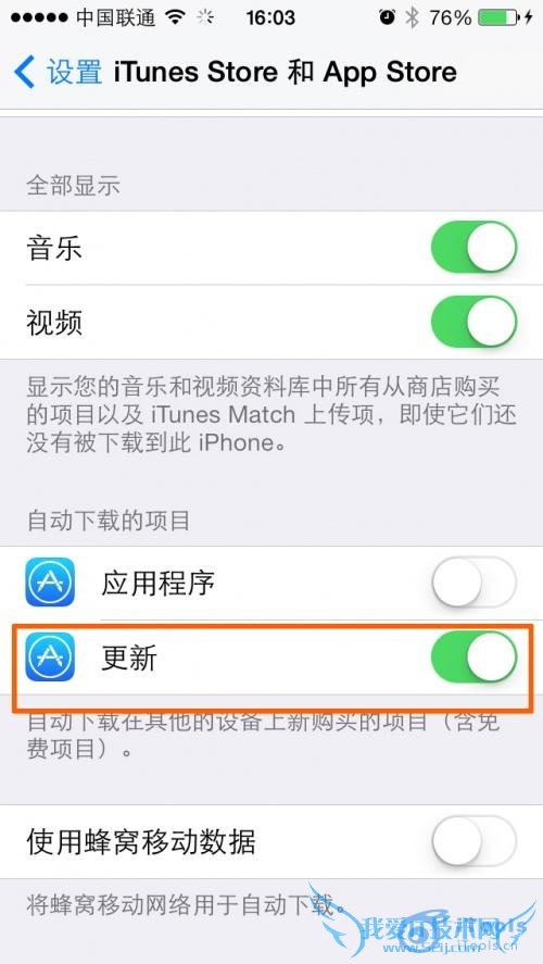 设置方法:设置-- iTunes Store和App Store -- 自动下载项目(更新)