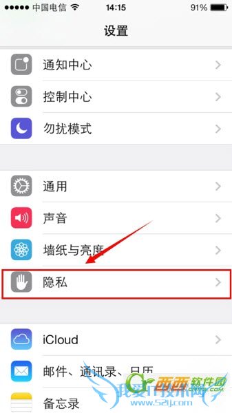2)在“设置”中找到“隐私”这一选项,然后点击进入“隐私”。(如下图所示)