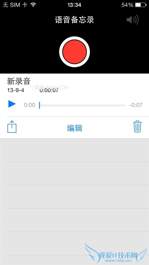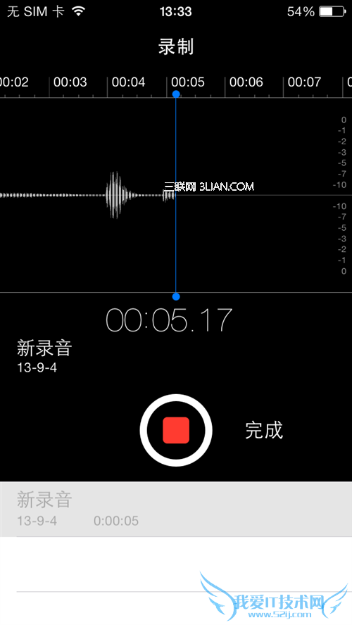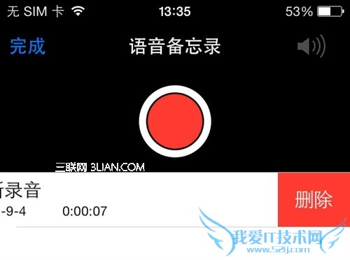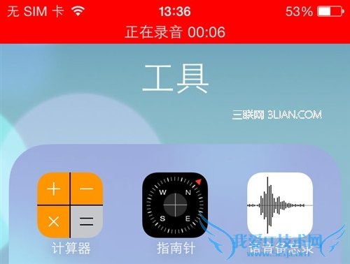启动录音之后,可以按一下HOME键退回到主屏幕,此时会继续录音,点击屏幕上方的红色条幅,可以立即回到语音备忘录程序: