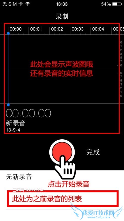 调整录音音量:将麦克风(iPhone底部左下角)移近或者远离录音对象即可。
