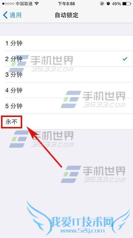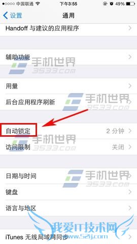 2)打开通用后我们再点击【自动锁定】,打开后我们点击最下方的【永不】就可以了。(如下图)