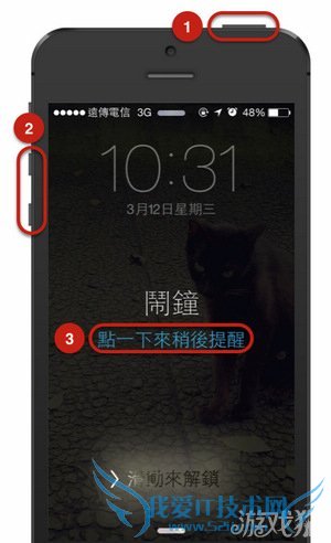 闹钟响起,锁定屏幕情况按下上方锁定键、或左边音量键、或待机画面上的小睡,这样就可以进行9分钟倒计时了。