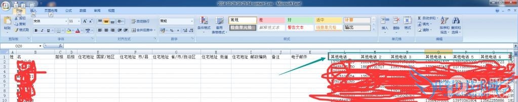 解压出csv格式,用excel打开, 把有号码岁对应的第一行,都改成 其他电话 ,