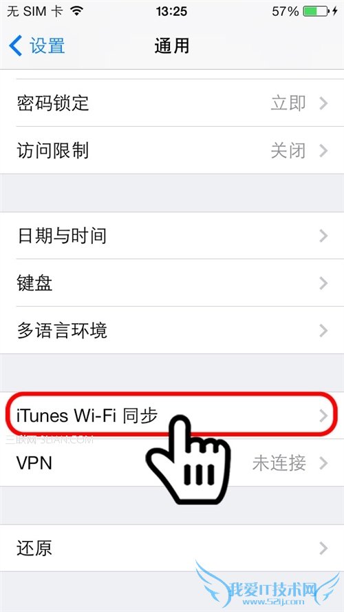 找到列表里的iTunes Wi-Fi同步,进入确认是否打开: