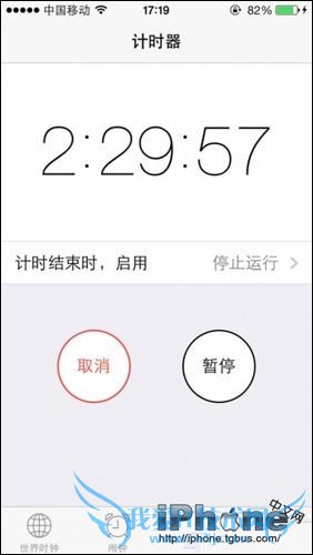 1、首先进入到时钟,然后点击右下角的计时器,找到中间的“计时结束时,启用”;