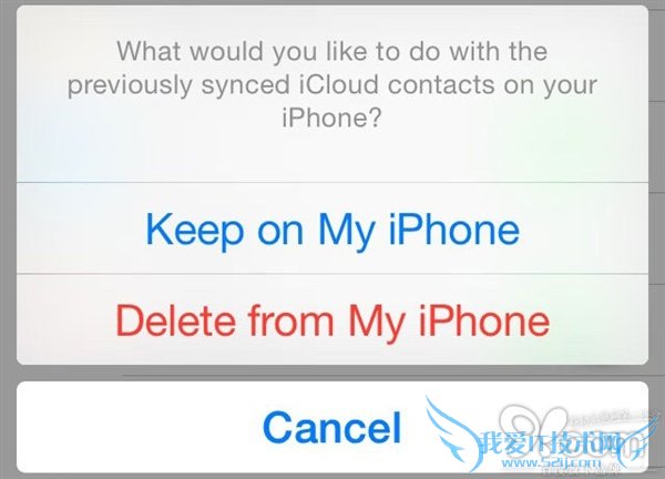 注:关闭「通讯录」开关时你会看到一个确认信息,询问你「是否在 iPhone 上保留联系人」,此时选择「从我的 iPhone 删除」。