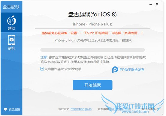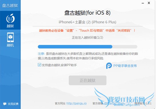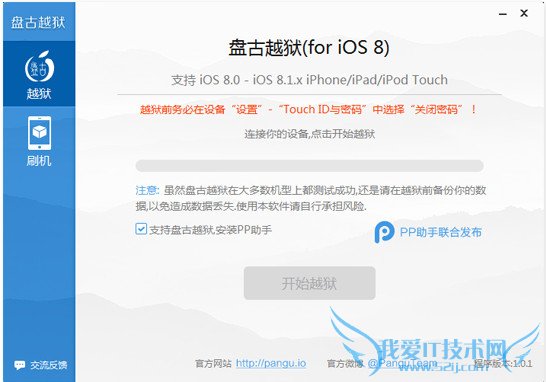 1、请先备份数据,虽然盘古越狱(iOS8)