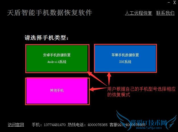 第三步:打开天盾智能手机数据恢复软件,选择手机类型,用户可以根据自己的手机操作系统选择相应的按钮。