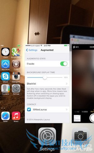iOS7越狱插件augmented让iPhone实现“透明屏幕”,ugmented可以为您替换桌面与锁屏背景壁纸为后置摄像头实时拍摄的画面。无需任何激活手势,进入设置后,开启插件开关即可马上完成壁纸替换,实现“透明屏幕”假象。augmented目前并不兼容iPad和iPod touch。