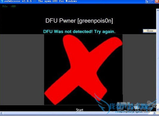 一些用户在刷自定义固件的时候,通过上述两种方法进入DFU模式,会出现错误,无法刷自定义固件,这时候就需要用到一些软件引导进入DFU模式。常见的软件有ireb、ifaith、红雪、sn0wbreeze等等(其实ifaith和sn0wbreeze等都是内置了ireb进行引导的)。下面就以通过sn0wbreeze中的ireb进入DFU的方法为例,ifaith可参考这个教程。