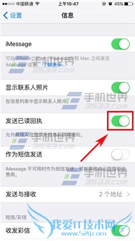 2)打开后我们即可将【发送已读回执】那栏右边的椭圆往右拉打开即设置完成。(如下图)
