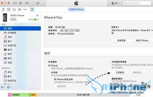 5、随后请在iPhone的管理摘要界面中,点击“立即备份”按钮,根据个人的需要来选择备份手机上的数据。