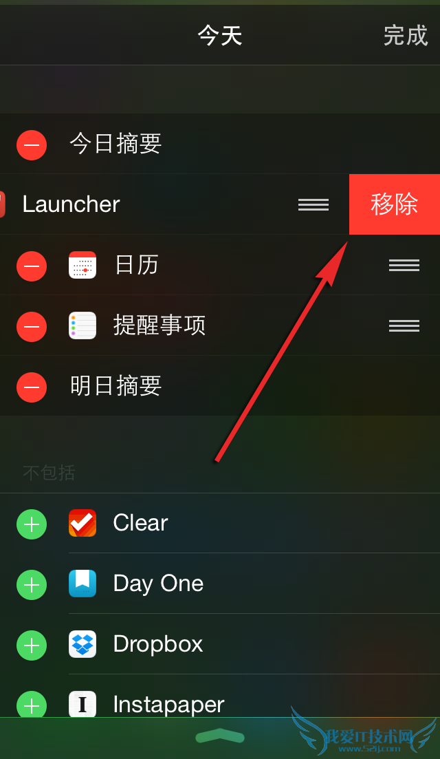 第三步: 接着点击小部件名称右方滑入的「移除」按钮。