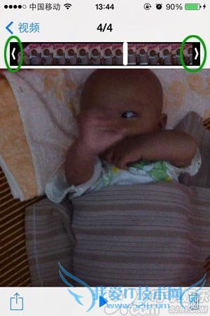目前的iOS7视频剪辑功能仅限于截取连续的视频片段,还不支持合并或剪掉中间的部分片段,也就是说,视频的剪辑功能只能够把片头或片尾的两端部分剪掉,留取中间的视频。下面就用实际的视频剪辑截图进行说明。