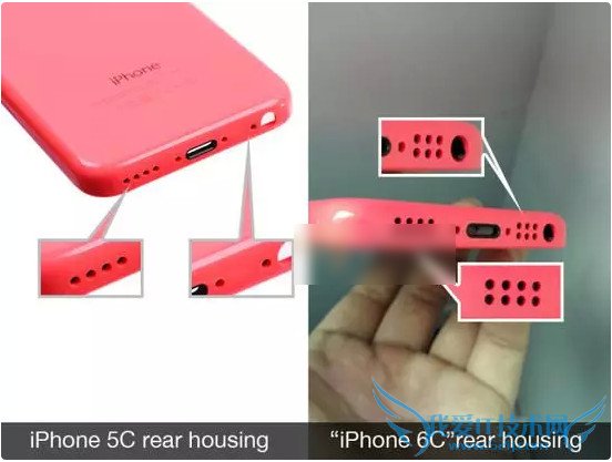从网上发现的外泄手机图片中可以清楚地看到6C的各种细节:缩小的屏幕尺寸、和5C相似的鲜艳外壳以及和i6相似的话筒、闪光灯布局。不过塑料的壳一点没有质感,真心觉得不好看。