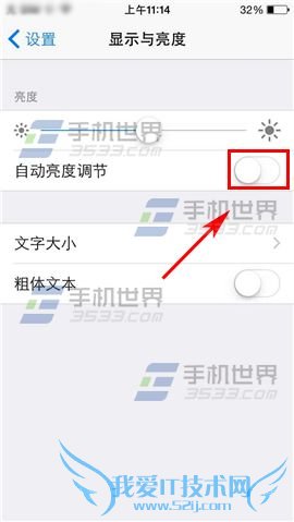 进入设置界面,选择【显示与亮度】,接着打开【自动亮度调节】右边开关即可。(如下图)
