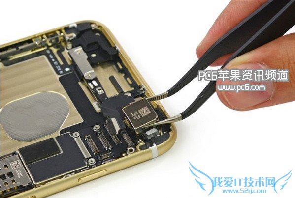 iPhone 6 Plus采用了全新的振动器,位于电池右侧,拆开之后发现了看起来易碎的铜线圈。