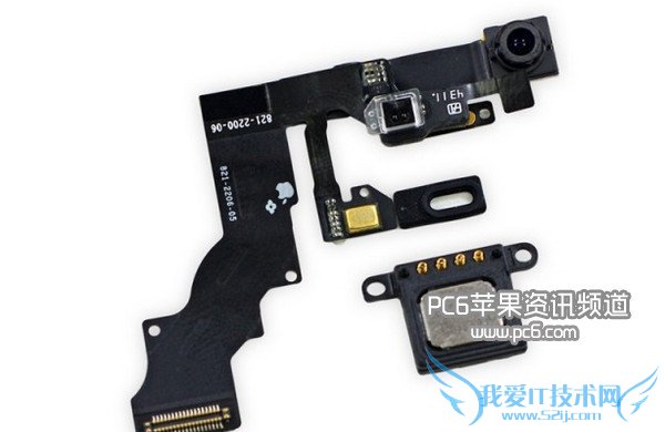前置摄像头的排线上包含了许多零部件,可以看到扬声器和听筒。