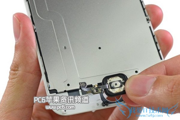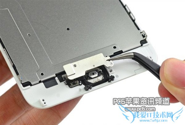 Home键使用一个金属支架固定,取下之后可轻松拆掉Home键。