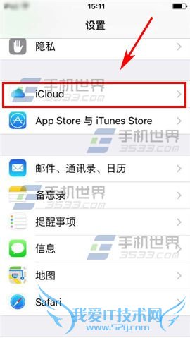 1)点击【设置】进入,然后点击【iCloud】一栏。(如下图)