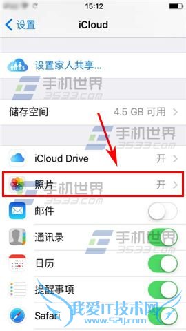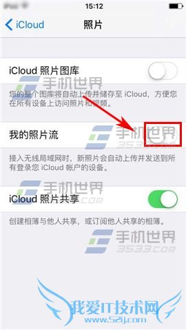 2)接着点击【照片】进入,最后关闭【我的照片流】右边开关即可。(如下图)