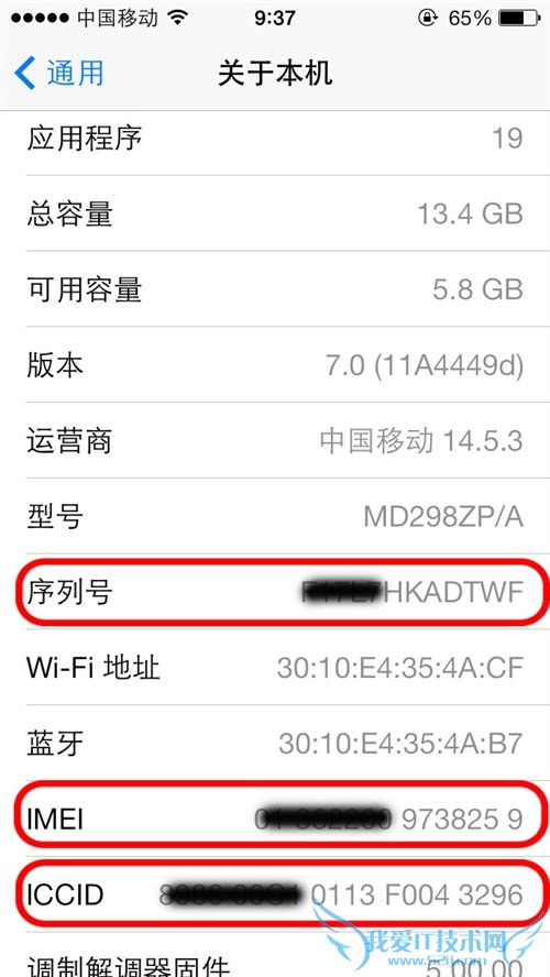 新购买的iPhone,请进入手机桌面上的“设置”-“通用”-“关于本机”,对手机的各种产品码截图保存,如下图: