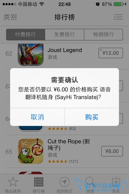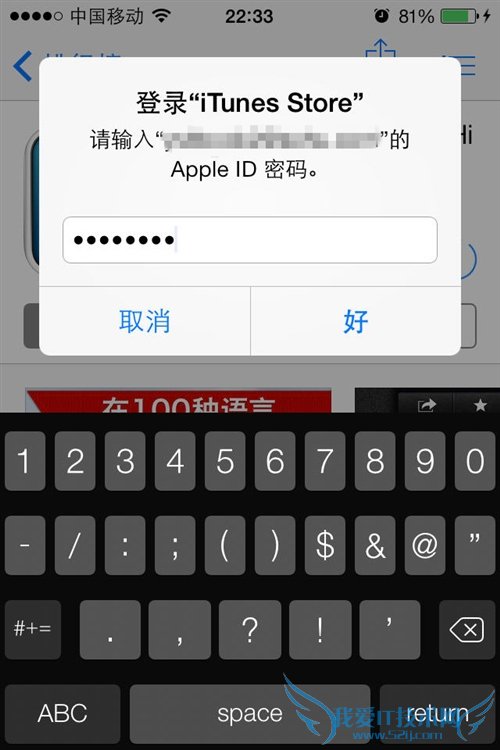 第三步:点击价格按钮后该按钮会随即变为“购买”,再次点击它会后会提示输入你的苹果账户密码。