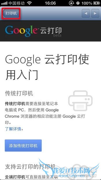 5.接下来,如果你没有登录Google帐号,那么页面会提示您先登录帐号,登录帐号后,就会进入如下图中的页面,此时点击左上角【打印机】返回按钮