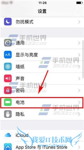 1)点击【设置】进入,接着选择【电池】。(如下图)