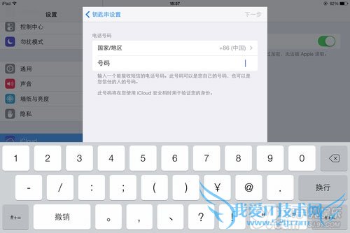 4、在设置密码成功后,最后一个环节还需要我们输入一个电话号码用于使用iCloud安全码时验证您的身份。此时点击下一步,完成iCloud钥匙串的全部设置。