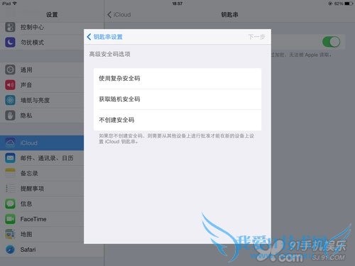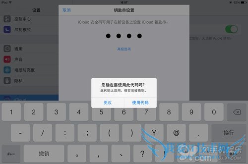 1、首先我们需要将系统升级到iOS7.0.3版本,在设置--iCloud--钥匙串中开启这一功能。