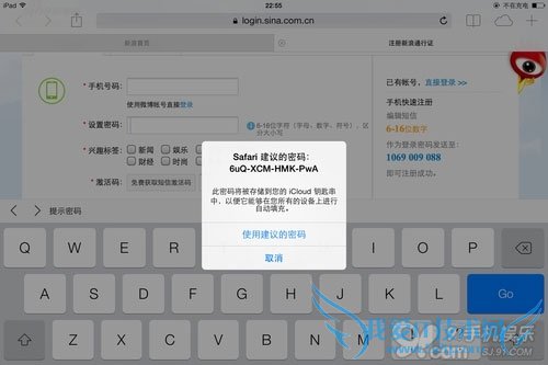 首先,iCloud钥匙串应该会出现以上图中所示的存储密码提示,不过笔者在测试了很多网站之后,均没能成功,对于其中的原因目前还没有合理的解释。另外一个钥匙串的功能则是帮助用户生成密码的功能,经测试在部分网站注册账号时会出现密码提升功能,不过由于有些网站会禁止这项功能,所以也存在无法使用推荐密码的情况发生。