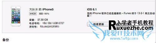 5、连接上itunes后会如上图显示图片,表示你的iPhone已成功连接电脑!