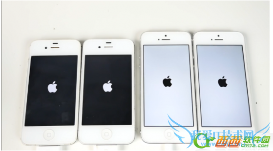 可以看到,在同时通电后开机速度最快的是 iPhone 5,这点没有悬念,其中更快进入锁屏界面的是左边运行的 iOS 9 的手机。而在 iPhone 4s 中,同样是运行 iOS 9 的版本稍快。