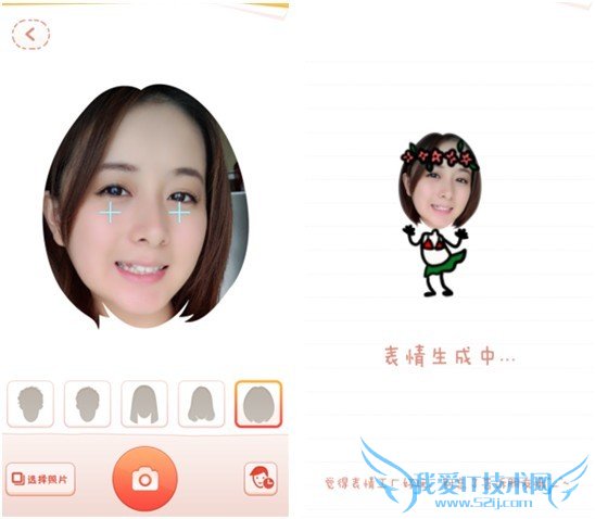 点击“动态表情”,相机启动后你可以直接从手机相册里“选择照片”,也可以现场直接拍摄一张图片,还有各种实时发型选择,如果你已经有生成过表情,也可以点击右下角的人物头像,就会出现你制作过的“历史头像”,简单又方便!