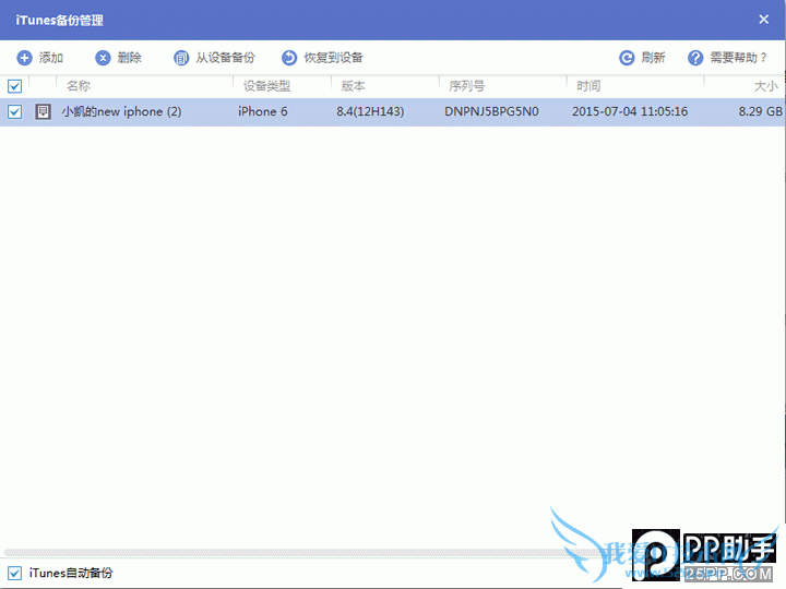 4. 在新打开的窗口中,我们可以看到刚才使用iTunes软件备份下来的文件,我们对这一行进行双击,如下图所示: