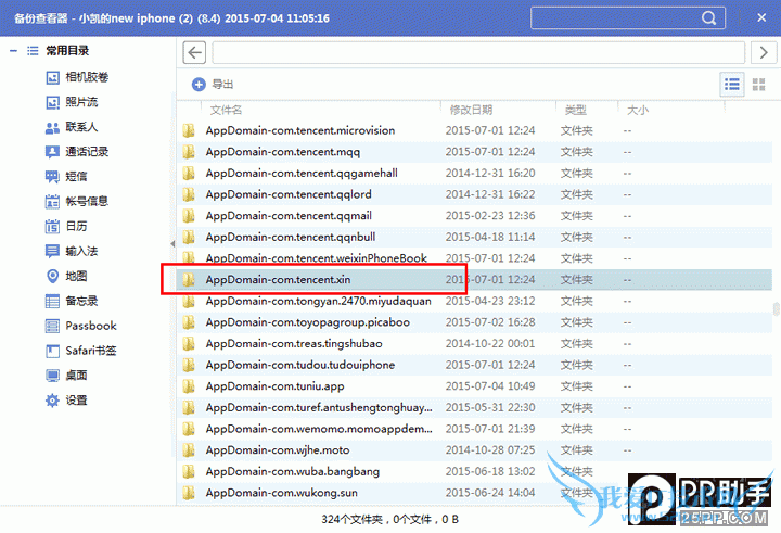 5. 将滚动条往下移动,直到找到AppDomain-com.tencent.xin,并对其进行双击打开。