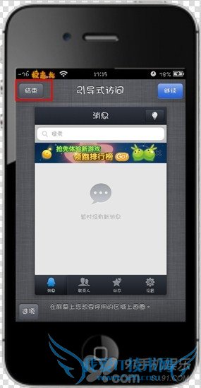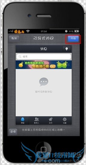3.打开某一程序,连续按3下home键,这时窗口就会多了一个框框,点击开始,功能就开始了,这时按home等按键都退出不了到主界面(这里以QQ为例)。