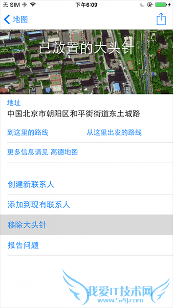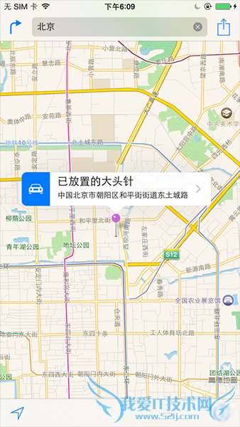 1、安装完成后,进入iOS自带地图软件,找到你想要模拟的位置,长按地图则会以大头针标注出来,模拟位置成功。