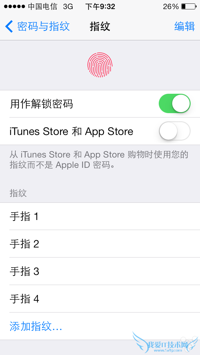 建议大家把左右手的拇指和食指都设置了,学长只设置了两个拇指,还有两个不是学长的,被学姐拿去设置了,美其名曰:要是你手指受伤了,我可以帮你开手机,呵呵......不过多设置一个人也是有好处的,手机拉寝室里,至少有个同学可以帮你打开,但是可以不知道你的开机密码。苹果的初衷就是为了减少输入密码,但是学长发现,在屏幕黑待机下,按HOME键唤醒,手感比较生硬,按完需要贴着HOME键验证指纹,操作不是很连贯,如果你一直按住HOME键,不是验证指纹而是启动了SIRI,调用多任务的时候,学长经常贴着HOME键,用验证指纹的方法启动多任务,一会才明白这货是需要按两下,看来要流畅操作真的需要一段时间适应。