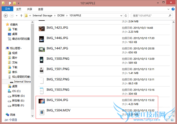 1.利用数据线将 iPhone 6s/6s Plus 跟电脑连接起来,然后在 iPhoneInternal StorageDCIM101APPLE(不一定是101,选择序数最大的那个文件夹即可)的路径下找到自己拍摄的 Live Photo 照片,然后将 MOV 视频那一部分复制到桌面上。