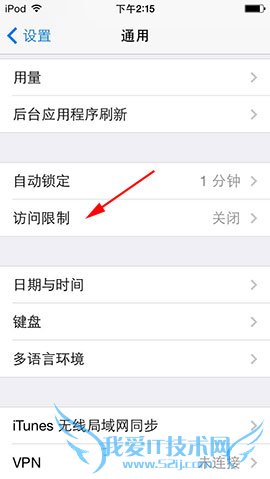 1)点击【设置】-【通用】-【访问限制】;(如下图)