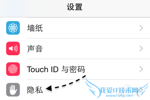 2、在设置列表里,找到“隐私” 一栏,点击进入。
