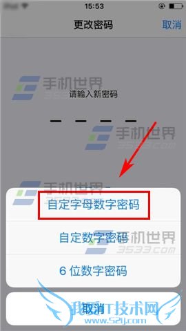 3)接着点击【密码选项】,点选【自定字母数字密码】。(如下图)