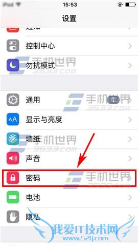 1)点击设置进入,然后点击【密码】一栏,再输入【锁屏密码】。(如下图)