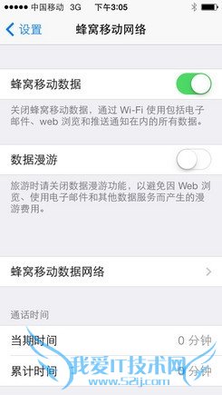 如果你有个人热点分享的需求,便可以在这里切换。切换后,信号会重新搜索,待出现中国移动后,我们需要进入设置-蜂窝移动网络页面,打开数据漫游,此时3G标识便会再次出现,随后个人热点开关也将会出现,开启后便可以把手机的流量共享个其他设备。