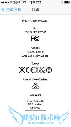 废话少说,我们现在便来实际操作 一下。第一步需要确认自己手上iPhone 5s/5c的版本,我们可以通过背部的文字或进入设置-通用-关于手机-法律信息-监管查看,必须是A1530(5s)或A1529(5c)这两个型号才 可以顺利破解。我们拿到的是香港版本iPhone 5c进行破解操作。