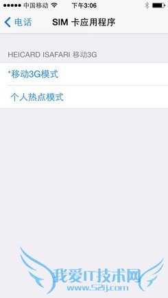 该卡贴在sim卡应用程序里面设置了两个菜单选项,分别是“移动3G模式”和“个人热点模式”,默认为“移动3G模式”.